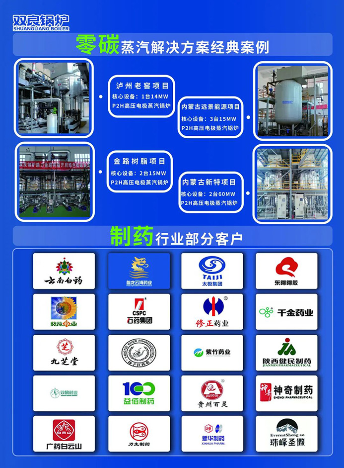 雙良鍋爐針對醫(yī)藥行業(yè)的用能特點和需求,開發(fā)了多種應用場景下的蒸汽系統(tǒng)解決方案,得到了諸多知名醫(yī)藥企業(yè)的認可,先后與云南白藥、盤龍云海藥業(yè)、太極集團、東阿阿膠、葵花藥業(yè)、修正藥業(yè)、千金藥業(yè)、九芝堂等多家知名醫(yī)藥企業(yè)合作。